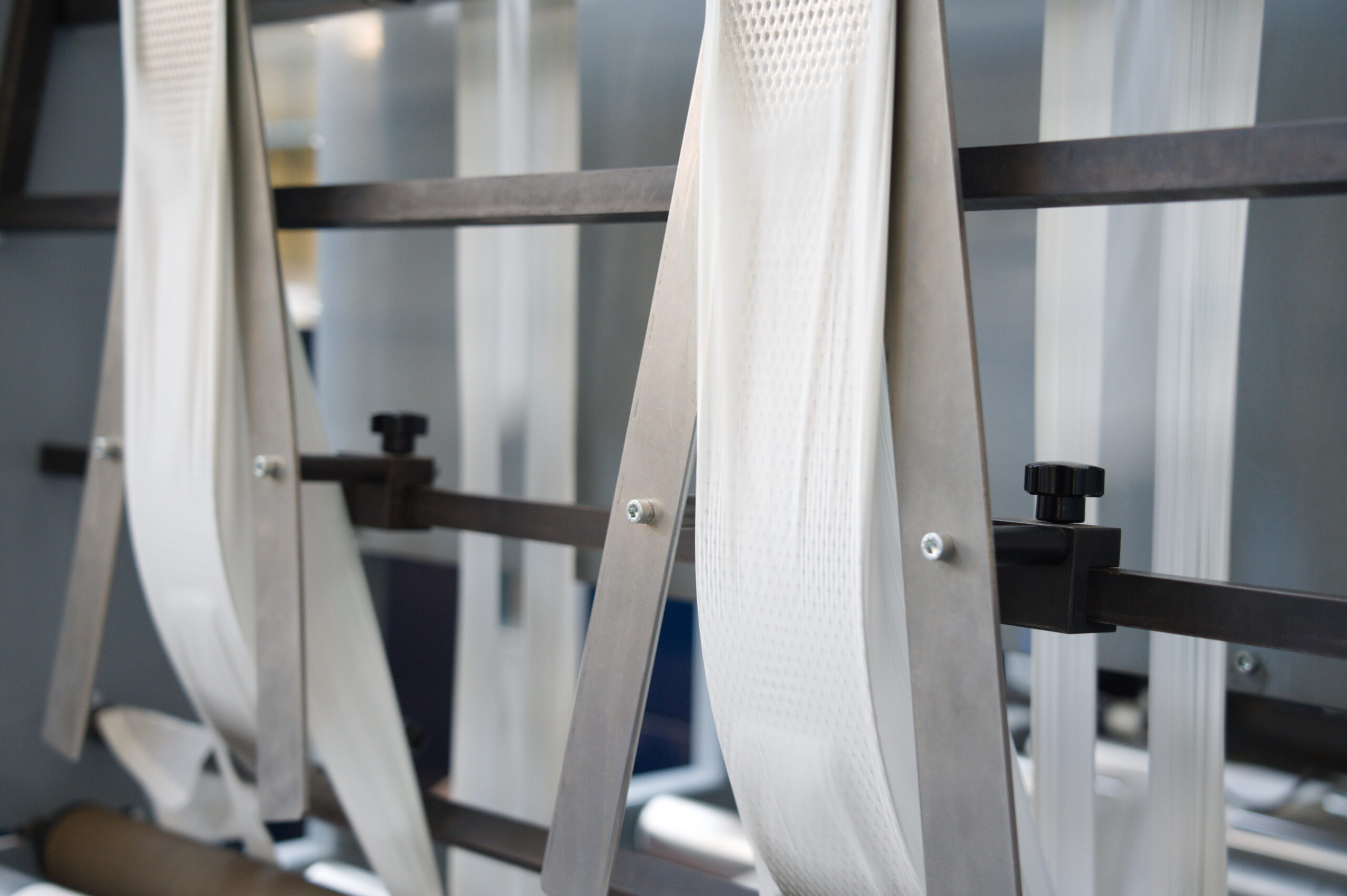 - 1 linea dedicata alla produzione di guanti in rotolo, realizzata con un macchinario brevettato e ideato internamente per garantire massima efficienza e precisione.